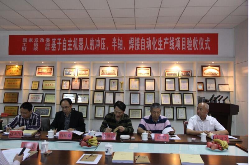 2013年,我公司承擔(dān)國家發(fā)改委、工信部、財(cái)政部《基于自主機(jī)器人的沖壓、半軸、焊接自動(dòng)化生產(chǎn)線項(xiàng)目》,并以此為契機(jī),認(rèn)真研發(fā)該項(xiàng)目技術(shù),并將產(chǎn)品進(jìn)行市場(chǎng)化推廣。2015年,項(xiàng)目通過驗(yàn)收,獲得驗(yàn)收組專家一致好評(píng)。