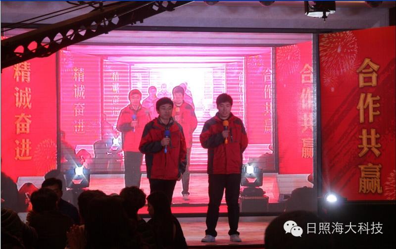 活動(dòng)現(xiàn)場(chǎng)充滿了激情、熱烈、活躍的氣氛。在晚會(huì)正式開始前,一段精心制作的視頻在舞臺(tái)屏幕上靜靜播放,視頻展現(xiàn)了2014年公司發(fā)展大事記,記錄了每一位公司員工的點(diǎn)滴汗水凝聚成的一項(xiàng)項(xiàng)輝煌的成績(jī)。然后,公司總經(jīng)理田洪芳先生致辭,田總說(shuō):“在過(guò)去一年里,山東海大機(jī)器人科技限公司克服了很多困難,實(shí)現(xiàn)了很多目標(biāo)。2014年公司研發(fā)的基于物聯(lián)網(wǎng)技術(shù)的成產(chǎn)效率提升系統(tǒng)(OEE)獲得了日照市科技進(jìn)步一等獎(jiǎng),公司還承擔(dān)了2014年山東省自主創(chuàng)新及成果轉(zhuǎn)化專項(xiàng)項(xiàng)目,今后我們要構(gòu)建更優(yōu)良的平臺(tái)、發(fā)掘更好的項(xiàng)目,向更高的目標(biāo)前進(jìn)。希望公司上下團(tuán)結(jié)一致,拿出激情和干勁,為日照海大的未來(lái)奮斗!”