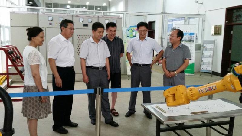 日照職業(yè)技術(shù)學(xué)院黨委書記何子安與我公司總經(jīng)理田洪芳陪山東省教育廳領(lǐng)導(dǎo)參觀我公司和日照職業(yè)技術(shù)學(xué)院聯(lián)合研發(fā)的工業(yè)機器人,領(lǐng)導(dǎo)觀看了機器人所作的書法,聽取了日照職業(yè)技術(shù)學(xué)院將聯(lián)合企業(yè)開設(shè)機器人相關(guān)專業(yè)的匯告,領(lǐng)導(dǎo)們對公司和學(xué)院給予了高度評價,希望我們抓住機遇,加大科研力度,帶動教育的發(fā)展。